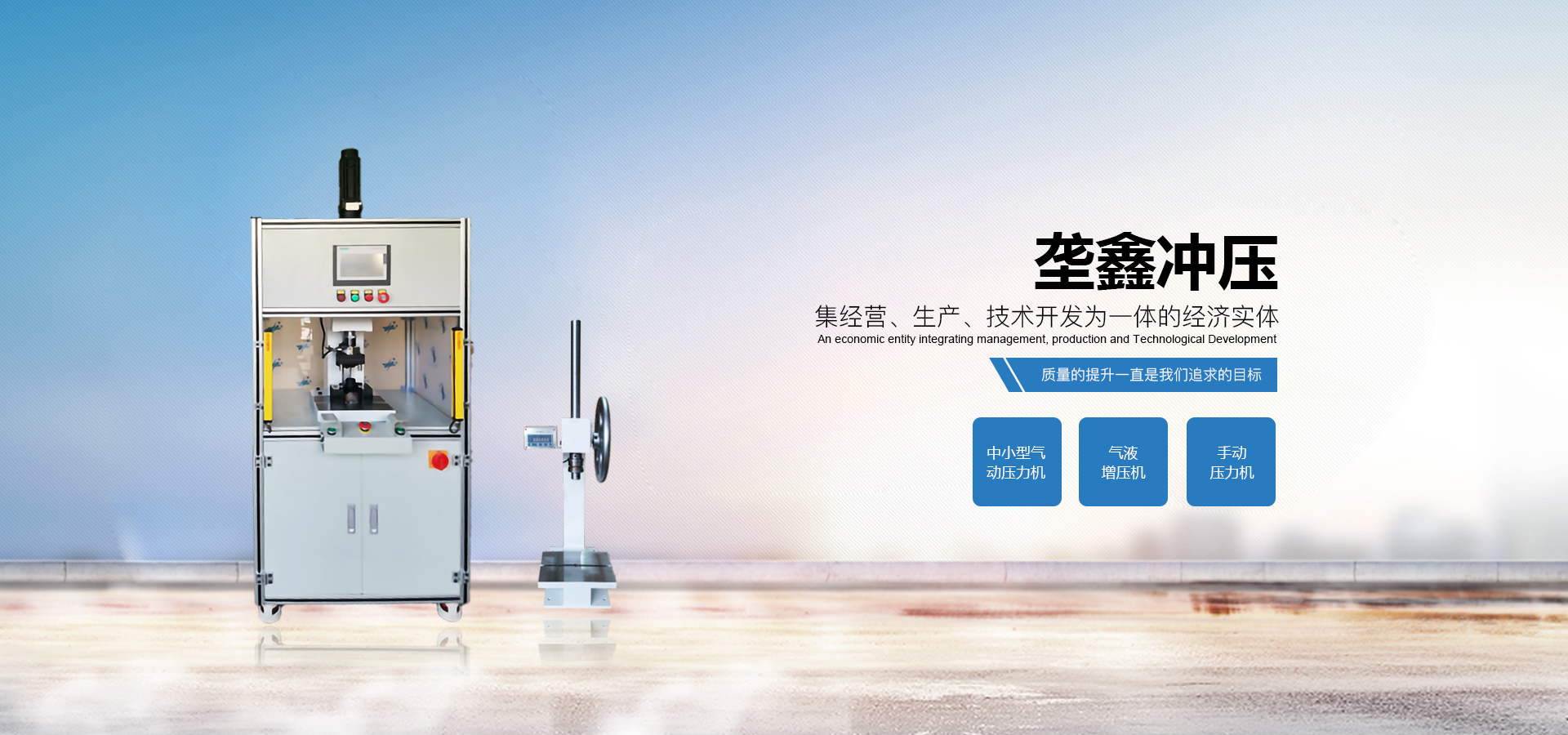煙臺壟鑫沖壓設備有限公司是集經(jīng)營、生產(chǎn)、技術(shù)開發(fā)為一體的經(jīng)濟實體,專業(yè)致力于中小型壓力機、非標壓力機的設計開發(fā)和制造。在引進德國、日本等國家先進的鉚壓控制技術(shù)及機器設計理念的基礎上,結(jié)合相關(guān)行業(yè)的實際需要,開發(fā)出各種臺式、落地式氣動壓力機、手動壓力機、氣液增壓機、氣液增力缸、旋鉚機、無鉚釘鉚接機等鉚接設備。產(chǎn)品應用領域廣泛,適用于汽車零件、電子、電器、家電、包裝、五金、等行業(yè)。公司視質(zhì)量為生命,并一貫遵循對每一臺產(chǎn)品負責,對每一位用戶負責,真誠為您服務。 自公司成立以來,秉承“誠信,創(chuàng)新,專業(yè)”的經(jīng)營理念,以優(yōu)質(zhì)的產(chǎn)品,完善的售后服務,樹立良好的品牌形象,服務于廣大新老顧客。我們竭誠于各位同仁攜手并進,共謀發(fā)展。